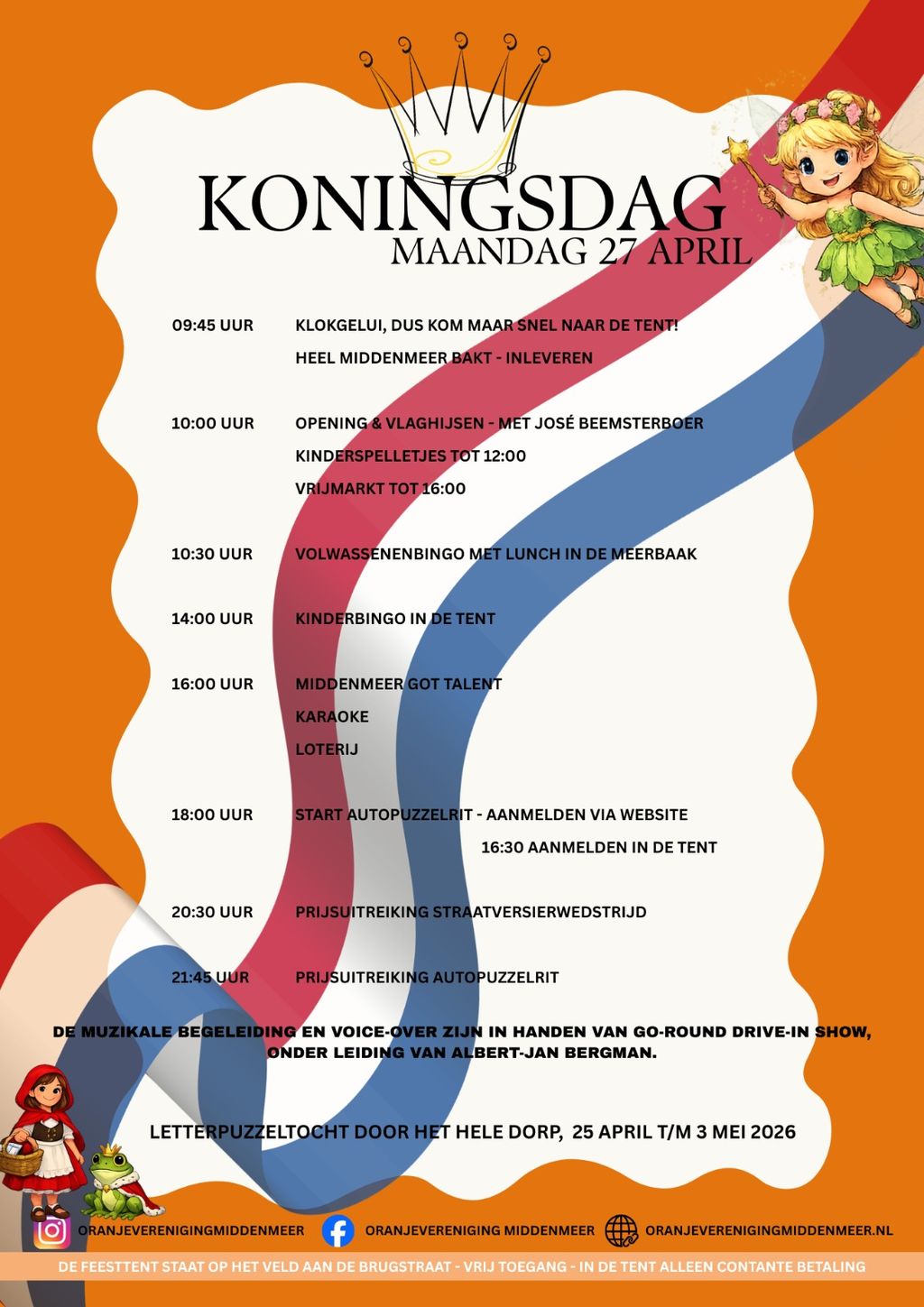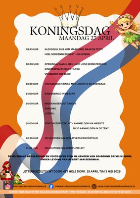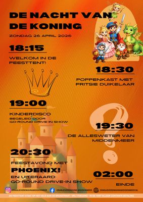 Orange reigns supreme in Middenmeer! During the Night of the King and King’s Day 2026, the area around the party tent on Brugstraat transforms into a vibrant meeting place for young and old.